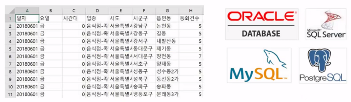 ex) 관계DB, 스프레드시트, CSV…